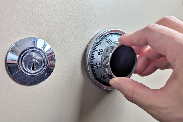 まず、金庫の型番や状態を確認し、特殊な工具や技術が必要かどうかを判断します。今回は比較的中型の金庫で、鍵穴とダイヤルが備わっているタイプでした。物理的な鍵とダイヤルの組み合わせによる解錠が必要となります。日本の国産金庫は、防犯性能も考慮されていますが、熟練した技術を持つ我々鍵ドットコムにお任せいただければ、迅速かつ丁寧に鍵開けが可能です。